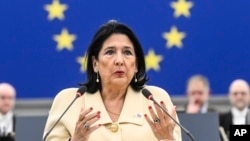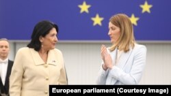 «Может, Европа смирится с тем, что оскорбляют ее послов, что премьер-министр лжет о позициях Румынии и Испании?» – обратилась с вопросом к европарламентариям президент Саломе Зурабишвили.